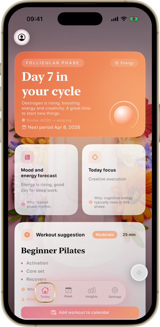 Personalized daily guidance shaped around your unique cycle patterns and energy levels.